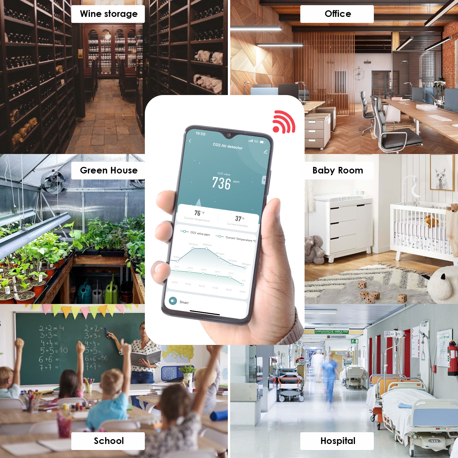 - Support real-time testing of the concentration of CO2 air
